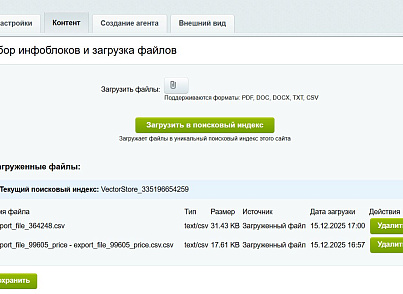 - Нажмите "Загрузить в поисковый индекс"