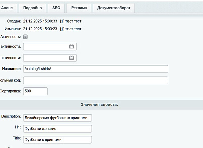 - Важно: имя элемента должно точно соответствовать URL-пути страницы (например, /catalog/ для страницы каталога).