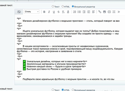 - #SEO_MAIN_TEXT# — для отображения основного текста