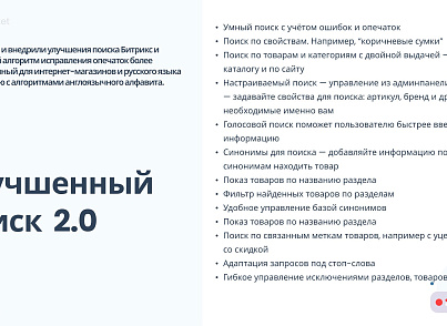 - Работа на стандартном компоненте Битрикс с сохранением его параметров.