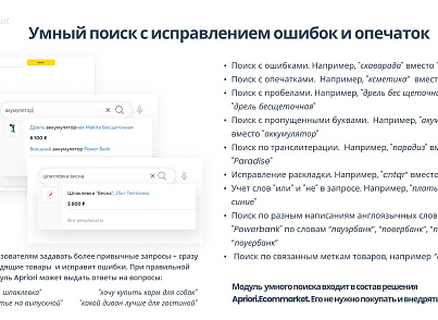 Разработали и внедрили собственный алгоритм исправления опечаток более адаптированный для интернет-магазинов и русского языка по сравнению с алгоритмами англоязычного алфавита.