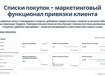- Списки покупок. Помогут пользователям планировать покупки и получать напоминания. Для B2B — назовите раздел «План закупок». - Пользователи могут привязывать элементы списка к своим объектам в разделе «Объекты».