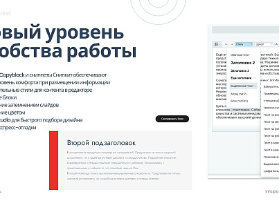 - Готовая система визульных элементов верстки плюс custom css и js для своих стилей.