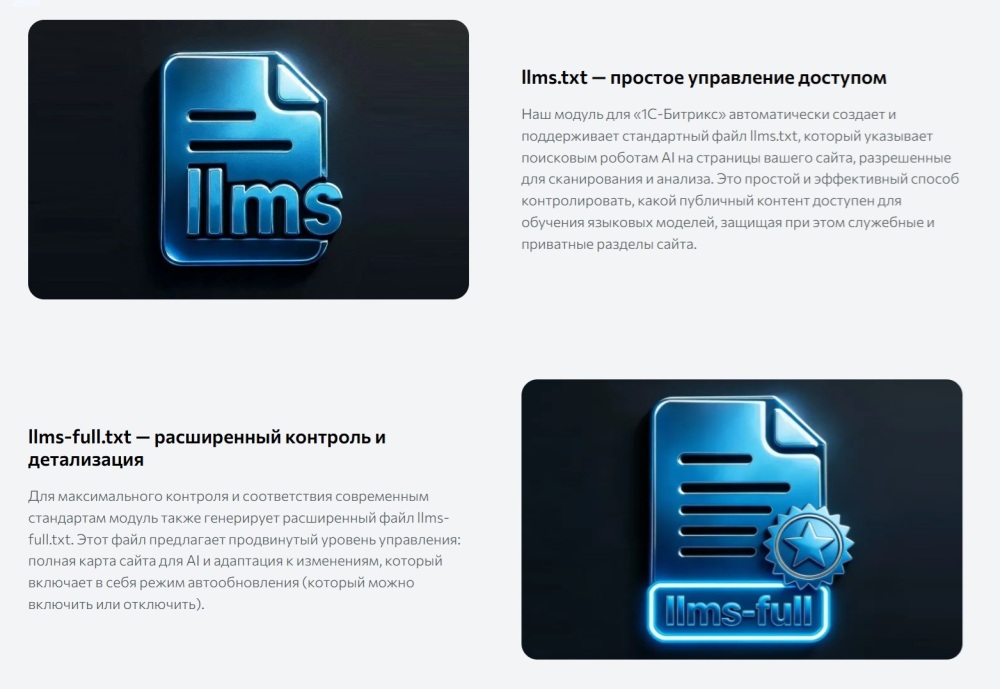 Модуль «Аритин: Генератор файла llms.txt» для автоматического создания и управления файлом llms.txt в системе 1С-Битрикс.