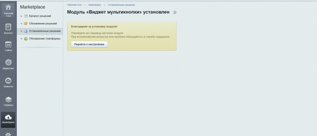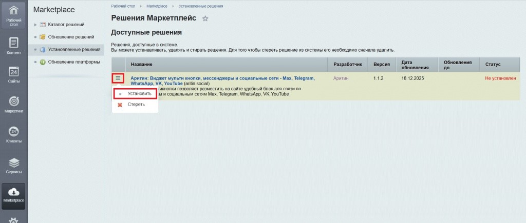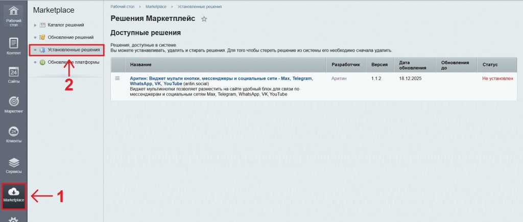 2. Перейдите в раздел Marketplace ⭢ Установленные решения.