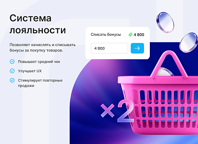Превращайте разовых клиентов в постоянных с помощью Аспро: Система лояльности. Это модуль, который позволяет создавать любые правила начисления и списания бонусов за покупки товаров, а еще назначать их разным группам пользователей. Инструмент повышает средний чек и улучшает пользовательский опыт.