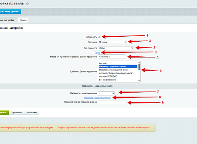 - Выбрать поля, при изменении которых будут запускаться бизнес-процессы