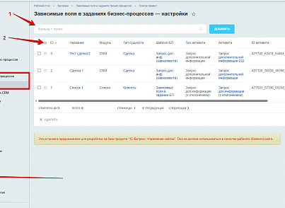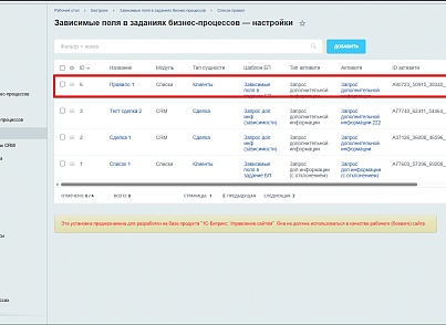 После загрузки и установки модуль появится во вкладке "Бестранк" -> "Зависимые поля в заданиях бизнес-процессов" -> "Список правил"