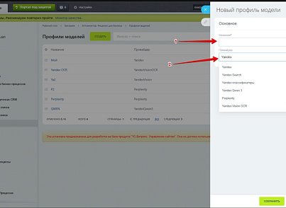 2. Провайдер (сейчас на выбор доступны Yandex, Yandex Search, Yandex классификаторы, Yandex QWEN 3, Yandex Vision OCR и Perplexity)