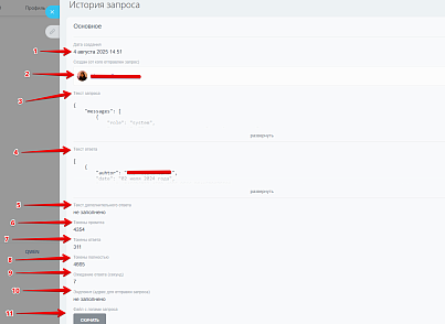 11. Файл с логами запроса. Доступен для скачивания по кнопке