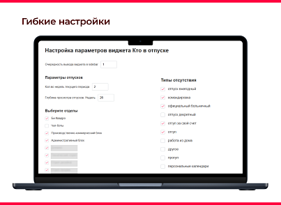 Виджет состоит из двух настраиваемых блоков для лучшего разделения предстоящих отсутствий на ближайшие и отдаленные по времени.