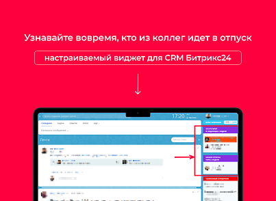 Модуль предназначен для коробочного решения Битрикс24. Выводит в области sidebar виджет со списком сотрудников оформивших отпуск, отгул или отсутствует по другой причине. Модуль использует стандартный функционал заявок на отпуск.
