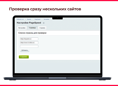 Проверяйте производительность выбранных страниц любых сайтов по Google PageSpeed Insights прямо в админке.