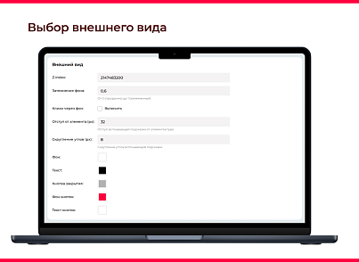 Оформление. Здесь можно выбрать, насколько сильно затемняется фон, скругление углов всплывающих окон и другое.