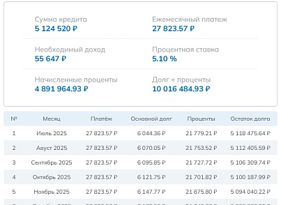 Решение предназначено для размещения Ипотечного калькулятора на любой странице Вашего сайта. При расчёте формируется: Сумма кредита, Ежемесячный платеж, Необходимый доход, Начисленные проценты, Долг + проценты и График платежей.