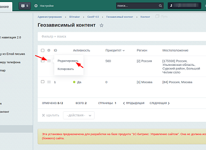 Если в редакции нет модуля Интернет-магазин, то модуль будет использовать собственные местоположения, которые имеют точно такой же набор местоположений как и модуль Интернет-магазина (используется тот же источник)