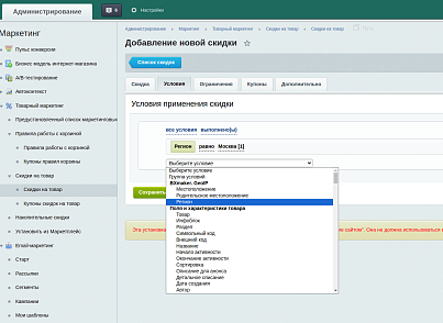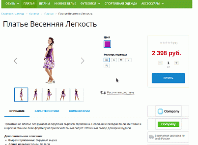 В карточке товара можно разместить компонент расчета стоимости доставки товара в зависимости от местоположения, который учтет настроенные ограничения по службам доставок, службам оплаты, а также скидки на доставку в правилах корзины
