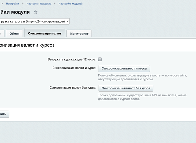 ▷ Валюты: отдельная вкладка для синхронизации валют/курсов (по кнопке и через агент).