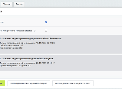 - Поиск по документации Bitrix Framework (требует дополнительного подключения сервиса генерации embeddings):