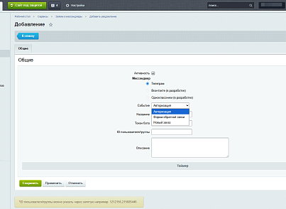 Модуль заявок в мессенджеры для сайта на Bitrix удобный инструмент интеграции взаимодействия пользователей с сайтом и популярных платформ мгновенных сообщений, таких как Telegram, Viber, OK, VK .