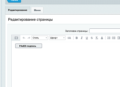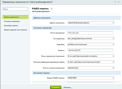5. Разместите с помощью визуального редактора компонент padessignature на страницу и произведите настройку, указав требуемые параметры.