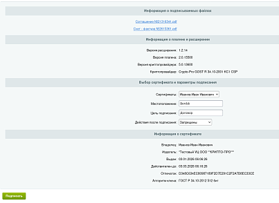 | 1.1.0 (23.01.2026) | Добавлена поддержка создание подписей в формате PAdES-T и PAdES-X Long Type 1 |