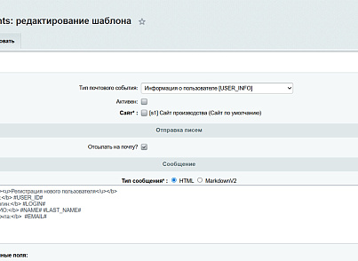 - Можно использовать все поля, доступные в почтовых шаблонах Битрикс