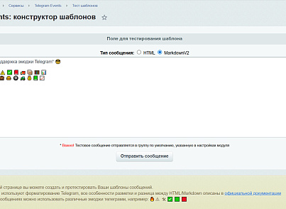 - Есть отдельная страница с проверкой шаблонов перед отправкой в Telegram