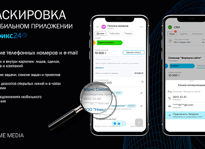 - Мобильная работа: в приложении Битрикс24 контакты автоматически маскируются.