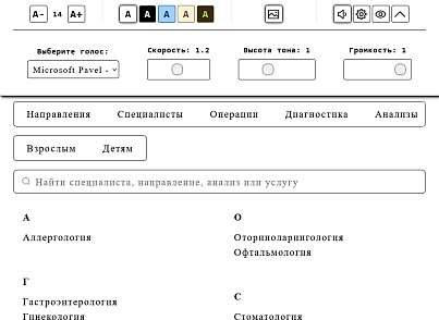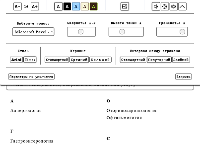 Прослушать сайт: Встроенный синтезатор речи озвучивает любой текст с возможностью настройки громкости и скорости.