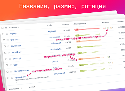 • Исправили подсчёт ротированных файлов — ротация работает без сбоёв.