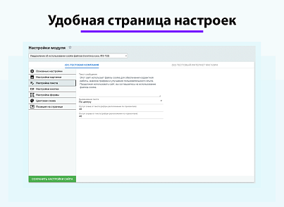 Модуль "Уведомление об использовании cookie файлов (политика куки, ФЗ-152)" для 1С-Битрикс предназначен для удобной и быстрой настройки уведомления о cookie-файлах.