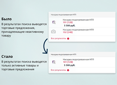 - Исключение ситуаций, когда покупатель видит ТП от скрытых/удалённых товаров.