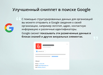 Свойства разметки используются только те, что описаны в официальной документации Google.Пожалуйста, перед началом использования модуля прочтите инструкцию и ознакомьтесь с документацией микроразметки.