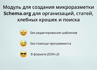 Все модули позволяют создавать неограниченное количество элементов разметки Schema.org в формате JSON-LD.