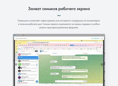 | ![]() Скриншоты действий сотрудника за компьютером Снимки экрана сохраняются на вашем сервере в сжатом проиндексированном формате. За счет этого можно легко найти пример взаимодействия сотрудника с конкретной программой, а также выявить нарушение задолго после его совершения. |