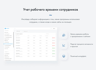 «ИНСАЙДЕР» собирает данные по разным аспектам работы (скриншоты, табель,