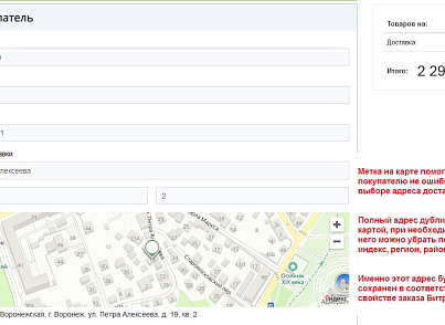 В стандартном оформлении заказа Битрикса свойство заказа, предназначенное для указания адреса, это обычная строка, в которой покупатель может указать свой адрес как угодно, в произвольном формате. Из-за этого покупатели чаще ошибаются в адресах доставки, менеджерам магазина приходится связываться с покупателями для уточнения данных, при использовании интеграции со службами доставки требуется исправлять адрес в заказе, если он написан в формате, "не опознаваемом" интеграционным модулем и т.д.