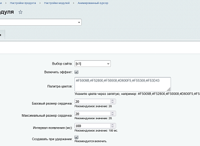 Раздел «Настройки → Настройки продукта → Настройки модулей → Анимированный курсор».