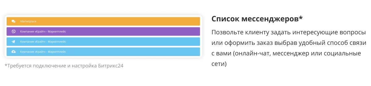 с формой обратного звонка. Подключите мессенджеры и социальные сети.