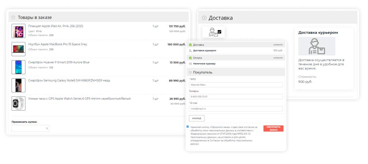подходящий способ доставки и оплаты и быстро оформить заказ без регистрации.