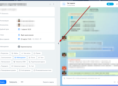 Модуль после установки добавляет в интерфейс карточки задачи кнопку для сворачивания/разворачивания левой панели с параметрами задачи.