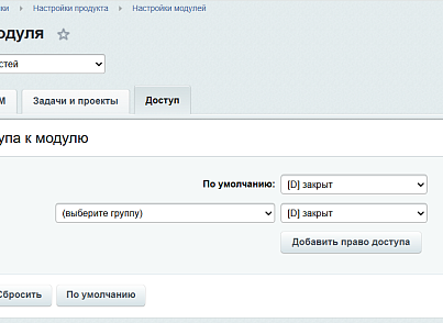 На текущей вкладке представлены возможности задания ограничений для пользователей по изменению настроек модуля (штатный функционал Битрикс).