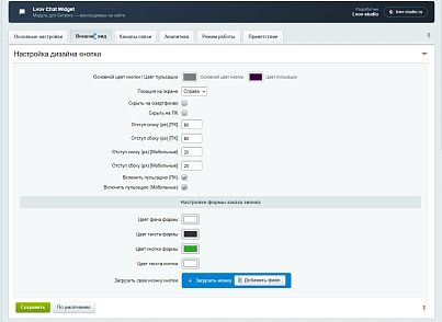 - Гибкий дизайн: Настраивайте цвета кнопки, иконок и форм под фирменный стиль вашего сайта прямо в настройках модуля.
