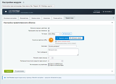- Рабочее время: Настраивайте расписание отображения виджета или отдельных каналов связи.