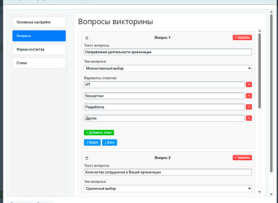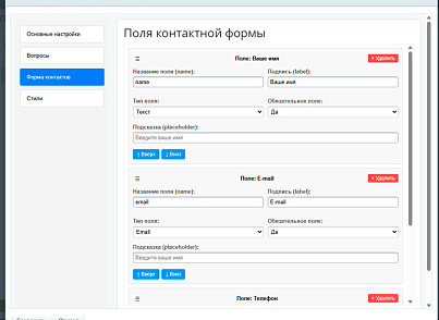 верстальщиков: Задать сложную структуру вопросов прямо в настройках компонента через JSON. - Для разработчиков: Генерировать наборы вопросов и полей формы на PHP "на лету". Это открывает безграничные возможности для кастомизации.