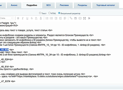 В нашем инфоблоке созданы демо-данные: разделы (Блоки преимуществ) и элементы (Преимущества).
