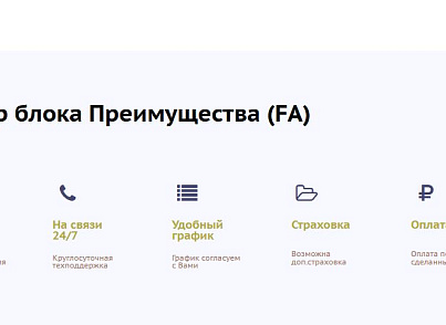 6. Вы можете создавать неограниченное количество Блоков преимуществ работы с вашей компанией, в зависимости от тематики страниц. Все настройки дизайна вам доступны в свойствах:
