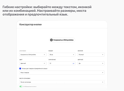 Модуль «Кнопка Ohmywishes» — это самый быстрый способ попасть в вишлисты ваших покупателей. Удерживайте тех, кто не готов совершить покупку сразу и привлекайте больше клиентов.