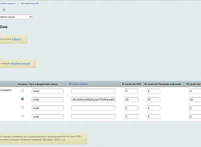 - Перейдите в Настройки → Настройки продукта → Настройки модулей → OX8.RU: DaData ИНН для оформления заказа.